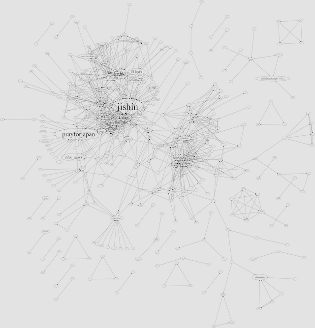 03-11 09 10 11 12 13 14 15 16 17 18 19 20 21 22 23 03-12 00 01 02 03 04 05 06 07 08 09 10 11 12 13 14 15 16 17 18 19 20 21 22 23 03-13 00 01 02 03 04 05 06 07 08 09 10 11 12 13 14 15 16 17 18 19 20 21 22 23 03-14 00 01 02 03 04 05 06 07 08 09 10 11 12 13 14 15 16 17 18 19 20 21 22 23 03-15 00 01 02 03 04 05 06 07 08 09 10 11 12 13 14 15 16 17 18 19 20 21 22 23 03-16 00 01 02 03 04 05 06 07 08 09 10 11 12 13 14 15 16 17 18 19 20 21 22 23 03-17 00 01 02 03 04 05 06 07 08 09 10 11 12 13 14 15 16 17 18 19 20 21 22 23 03-18 00 01 02 03 04 05 06 07 08 | Top > Project 311 > 2011-03-12_232011-03-12_23のハッシュタグの共起ネットワーク*各画像は縮小後の物で、元のサイズの画像にリンクされています。全体UCINET用ネットワークファイルGraphviz用ネットワークファイル ![]() リツイートなしUCINET用ネットワークファイルGraphviz用ネットワークファイル ![]() リツイートのみUCINET用ネットワークファイルGraphviz用ネットワークファイル ![]() |
