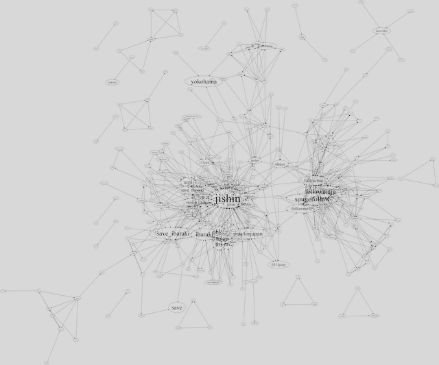 03-11 09 10 11 12 13 14 15 16 17 18 19 20 21 22 23 03-12 00 01 02 03 04 05 06 07 08 09 10 11 12 13 14 15 16 17 18 19 20 21 22 23 03-13 00 01 02 03 04 05 06 07 08 09 10 11 12 13 14 15 16 17 18 19 20 21 22 23 03-14 00 01 02 03 04 05 06 07 08 09 10 11 12 13 14 15 16 17 18 19 20 21 22 23 03-15 00 01 02 03 04 05 06 07 08 09 10 11 12 13 14 15 16 17 18 19 20 21 22 23 03-16 00 01 02 03 04 05 06 07 08 09 10 11 12 13 14 15 16 17 18 19 20 21 22 23 03-17 00 01 02 03 04 05 06 07 08 09 10 11 12 13 14 15 16 17 18 19 20 21 22 23 03-18 00 01 02 03 04 05 06 07 08 | Top > Project 311 > 2011-03-14_082011-03-14_08のハッシュタグの共起ネットワーク*各画像は縮小後の物で、元のサイズの画像にリンクされています。全体UCINET用ネットワークファイルGraphviz用ネットワークファイル ![]() リツイートなしUCINET用ネットワークファイルGraphviz用ネットワークファイル ![]() リツイートのみUCINET用ネットワークファイルGraphviz用ネットワークファイル ![]() |