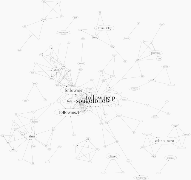 03-11 09 10 11 12 13 14 15 16 17 18 19 20 21 22 23 03-12 00 01 02 03 04 05 06 07 08 09 10 11 12 13 14 15 16 17 18 19 20 21 22 23 03-13 00 01 02 03 04 05 06 07 08 09 10 11 12 13 14 15 16 17 18 19 20 21 22 23 03-14 00 01 02 03 04 05 06 07 08 09 10 11 12 13 14 15 16 17 18 19 20 21 22 23 03-15 00 01 02 03 04 05 06 07 08 09 10 11 12 13 14 15 16 17 18 19 20 21 22 23 03-16 00 01 02 03 04 05 06 07 08 09 10 11 12 13 14 15 16 17 18 19 20 21 22 23 03-17 00 01 02 03 04 05 06 07 08 09 10 11 12 13 14 15 16 17 18 19 20 21 22 23 03-18 00 01 02 03 04 05 06 07 08 | Top > Project 311 > 2011-03-15_052011-03-15_05のハッシュタグの共起ネットワーク*各画像は縮小後の物で、元のサイズの画像にリンクされています。全体UCINET用ネットワークファイルGraphviz用ネットワークファイル ![]() リツイートなしUCINET用ネットワークファイルGraphviz用ネットワークファイル ![]() リツイートのみUCINET用ネットワークファイルGraphviz用ネットワークファイル ![]() |